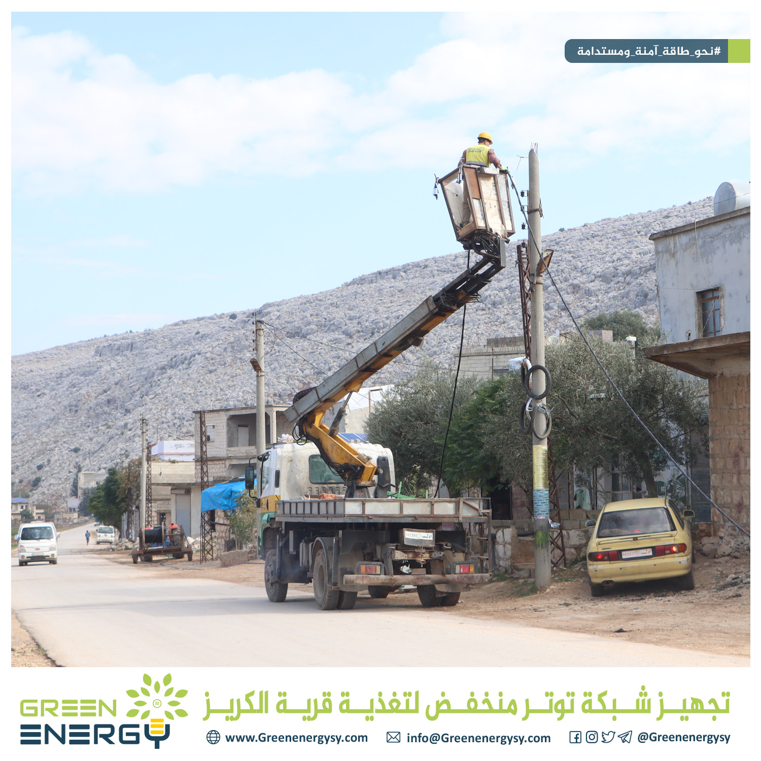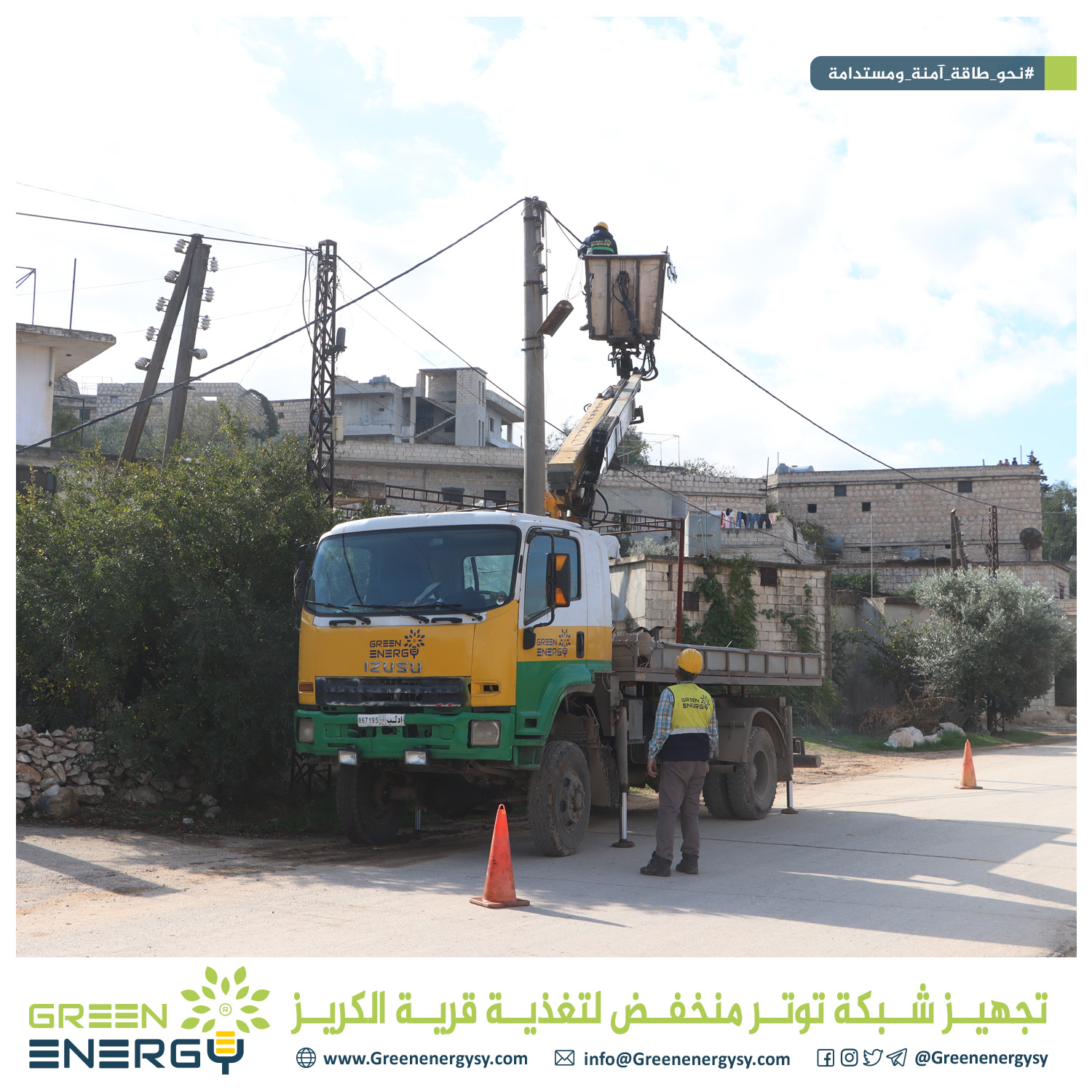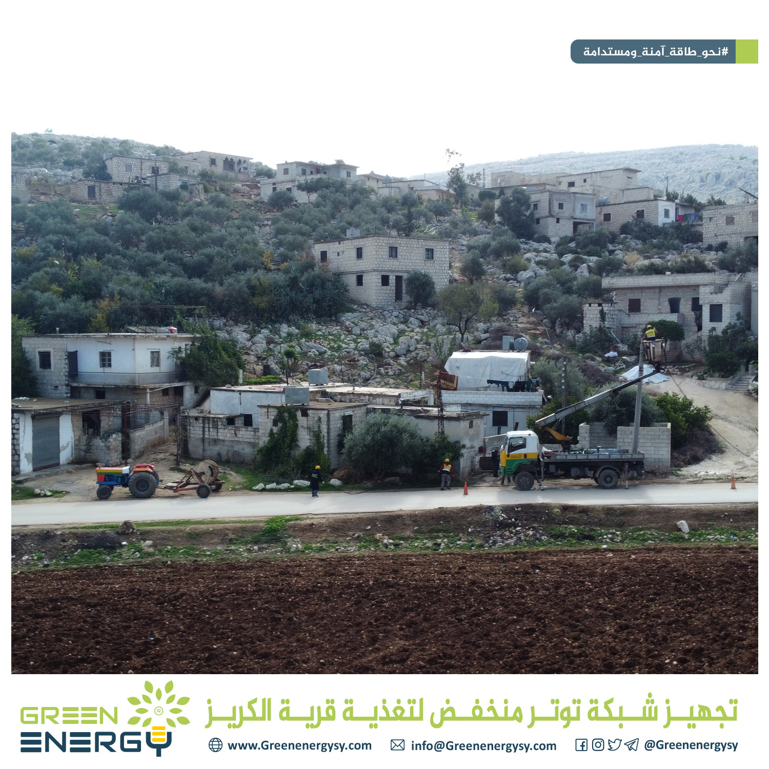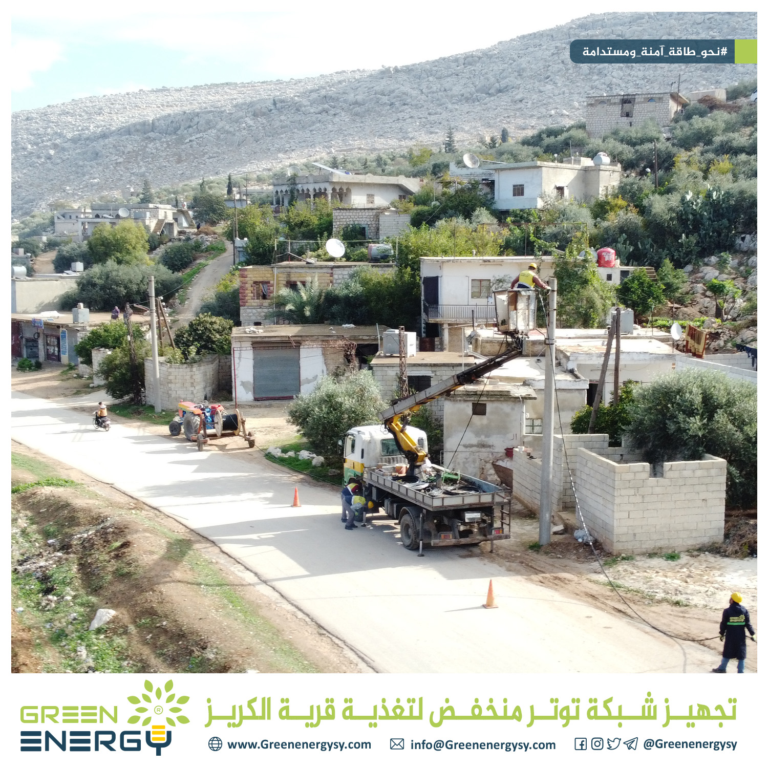 جانب من الأعمال اليومية لورشات الشركة من مد وتجهيز شبكة توتر منخفض لتغذية المشتركين في قرية الكريز التابعة لقسم كهرباء سهل الروج. 💡💡