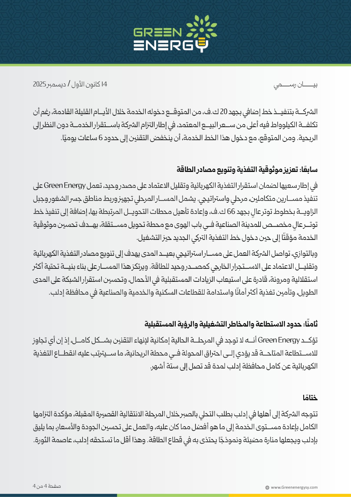 1. حول واقع التغذية الكهربائية في محافظة إدلب والتحديات التشغيلية وخطط المعالجة 💡💡