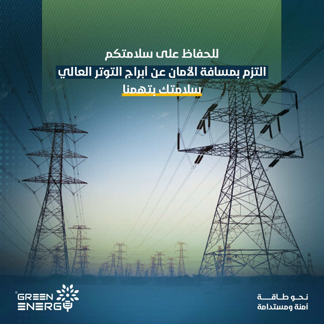 للحفاظ على سلامتكم، التزم بمسافة الأمان عن أبراج التوتر العالي، سلامتك بتهمنا.